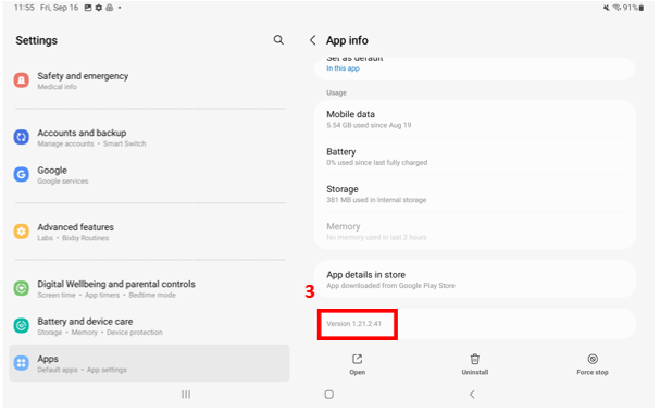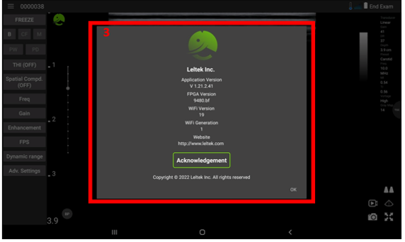 - List (upper left) > About > Record App, FPGA & WIFI version