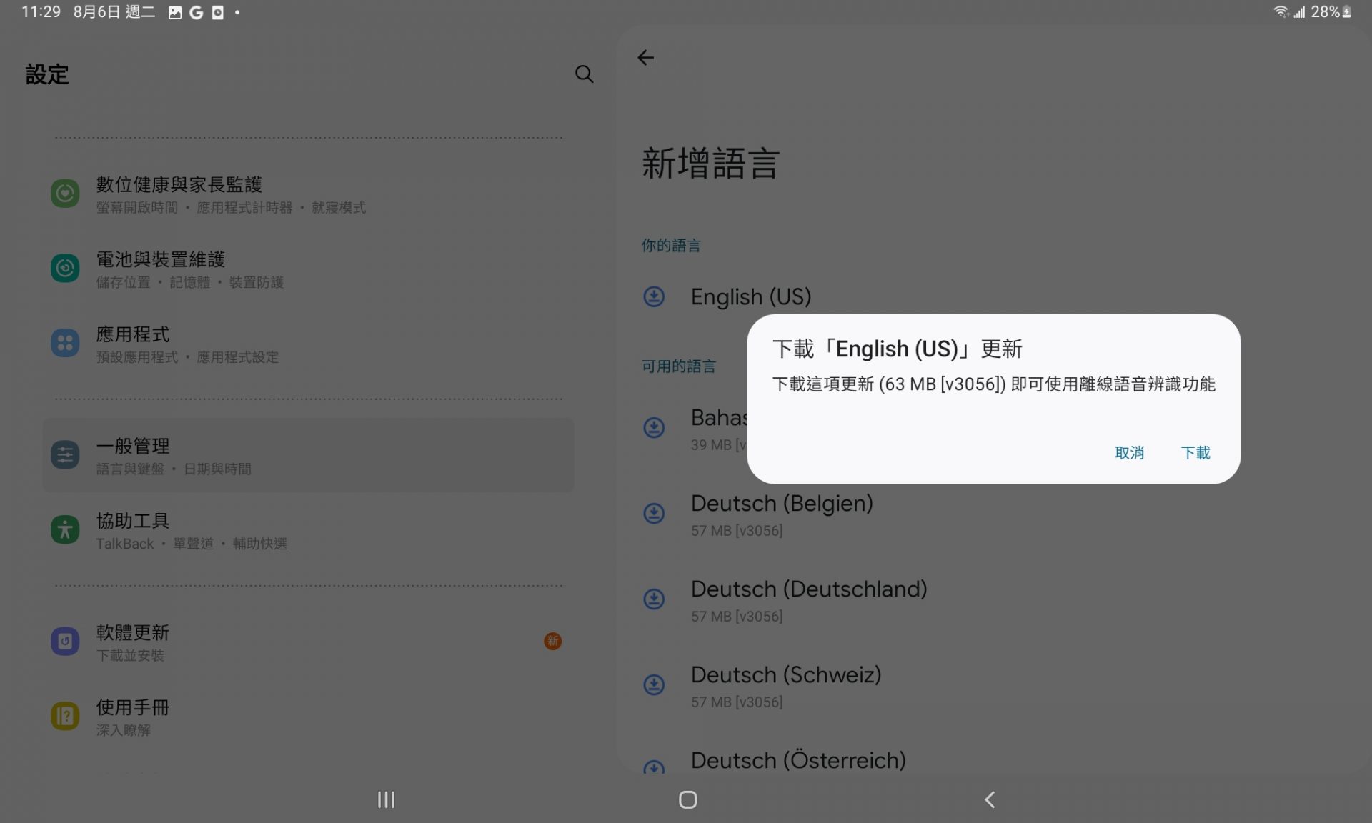 說明:LeSONO Leltek Ultrasound App 自 1.25.2.1 後提供聲控指令(“Freeze”、 “Live”,“Capture Image”等)功能。該功能是使用 Android 系統的語言套件,由於該功能依裝置差異與通信條件限制,可先下載離線套件強化語音辨識功能。