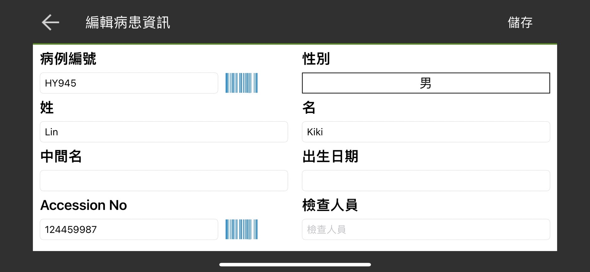 在緊急情況,可能在未編修病人資訊前即先進行檢驗掃描;可透過APP回顧功能中,病人資訊欄進行後續編修後上傳資訊系統。