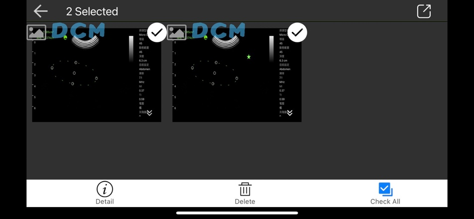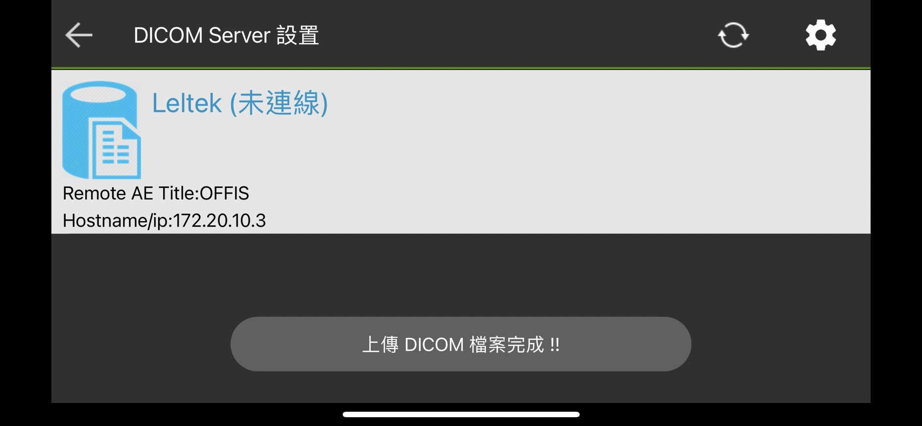 - 在病人回顧畫面中,選擇欲上傳檔案,進行檔案輸出。*需先進行 DICOM 伺服器設置。