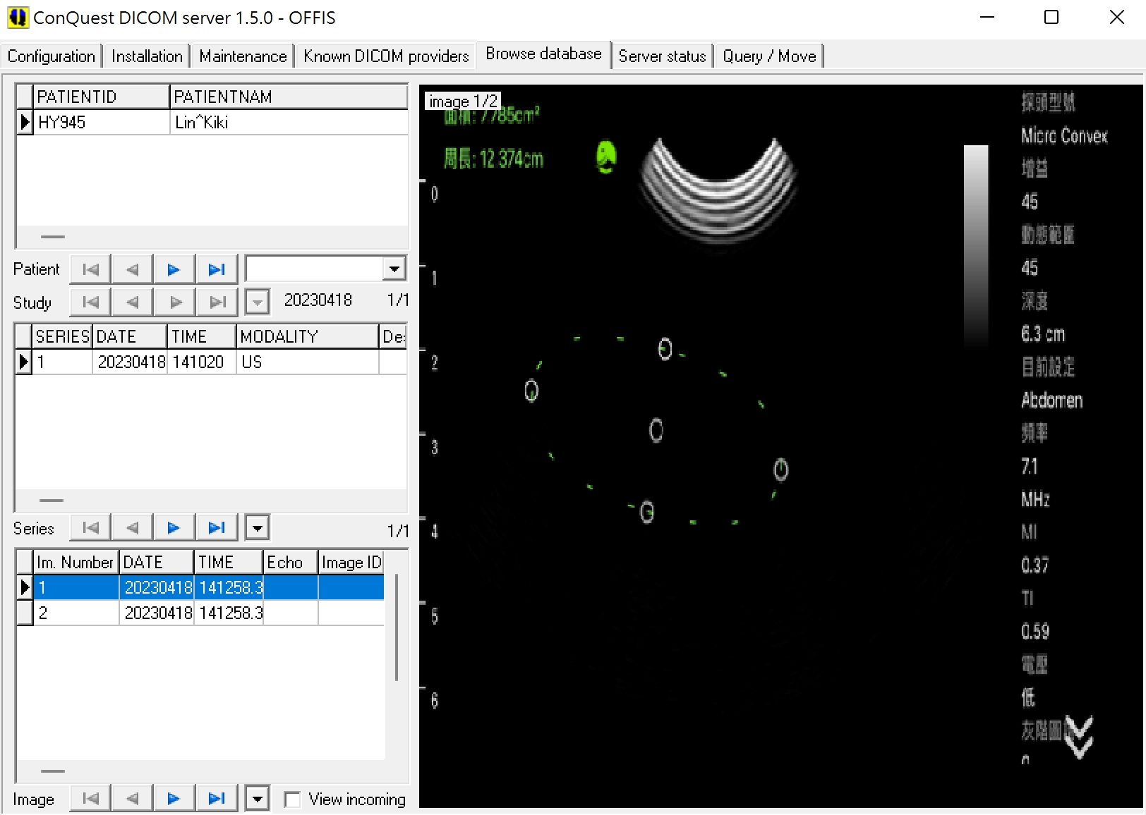 - 可在 PACS Server 中確認是否成功收取影像;並於資訊系統中進行工單登錄。
