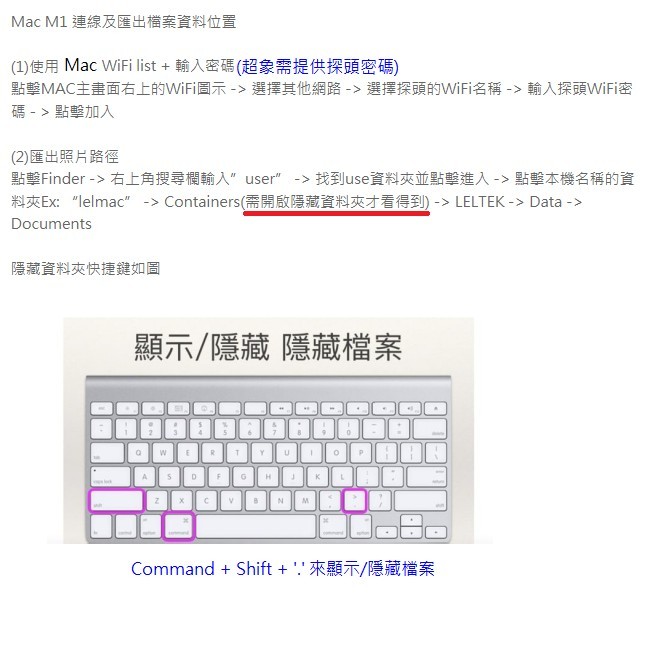 2. 儲存照片後,依照圖中的路徑找尋到儲存資料夾,這當中有需要把隱藏檔打開(Command+shift+’.’),進去後就可以找到儲存的照片